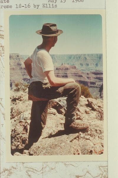 Doc Ellis on the summit of Brahma and looking southeast to Angels Gate