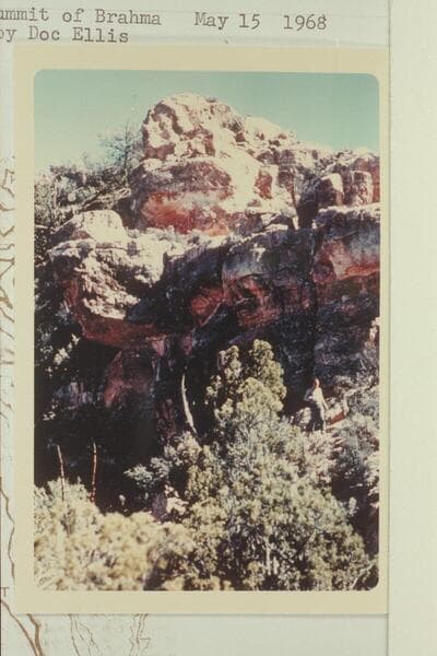Doc Ellis on the summit of Brahma and looking southeast to Angels Gate