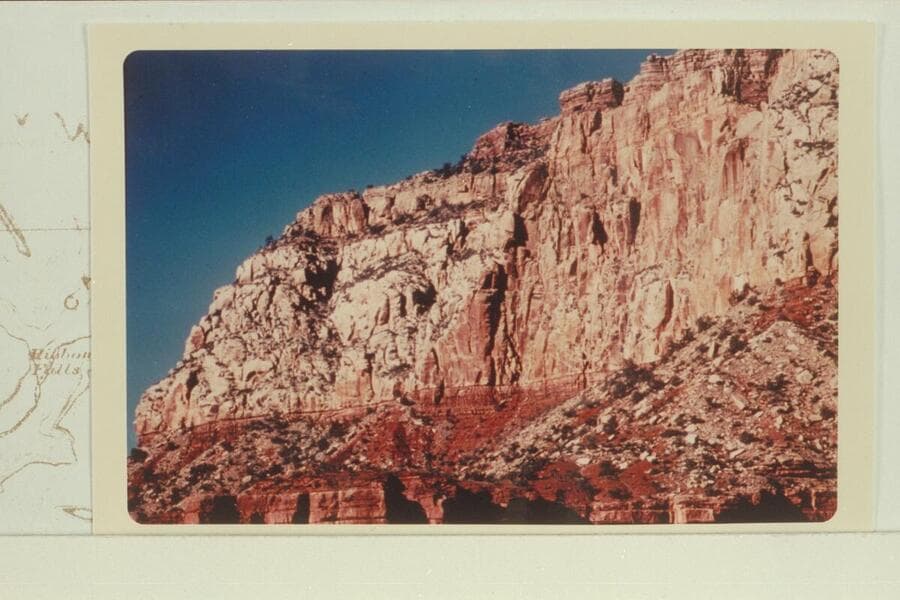The base of Zoroaster and, in the shaded bay, the route up the upper Supai