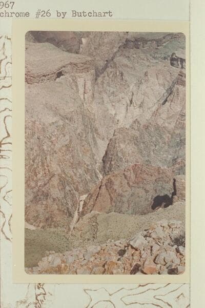 Suspension bridge; mouth of Bright Angel Creek from Sumner Butte