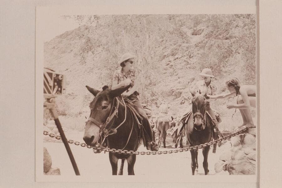 Pauline Saylor and Rosalind Johnson ride out to the South Rim after completing the traverse from Lees Ferry to Bright Angel Creek with the 1947 Nevills party