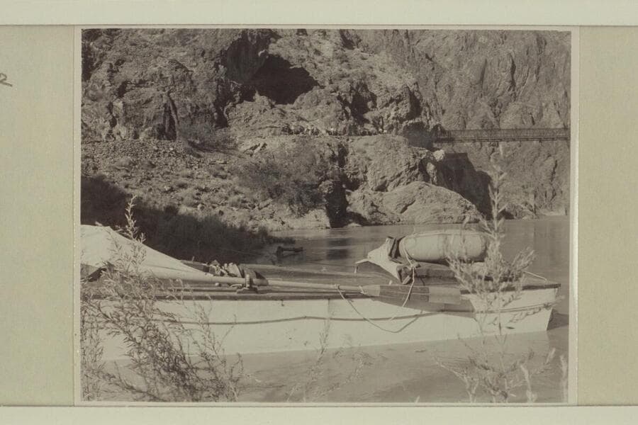 Ed and Edward Hudson posed on the "Esmeralda II"; Bright Angel Creek