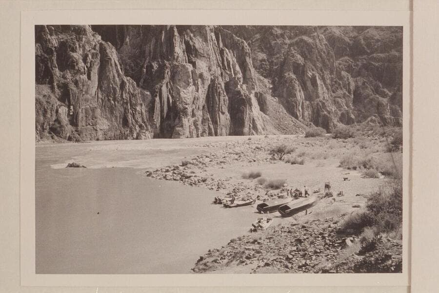 Drydock at Bright Angel Creek. The two Powell boats rolled fro re-glassing