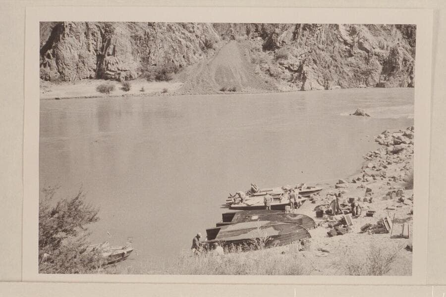 Drydock at Bright Angel Creek. The two Powell boats rolled for re-glassing