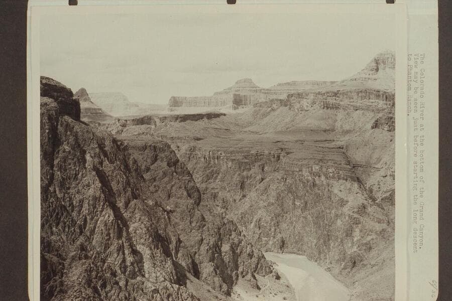 The Colorado River at the bottom of the Grand Canyon. View may be seen just before starting the long descent to Phantom Ranch