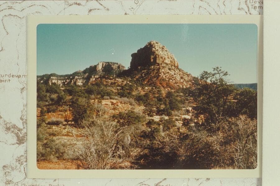 West from area of Deva Saddle to Isis Temple at center, Buddha Temple and Shiva Temple
