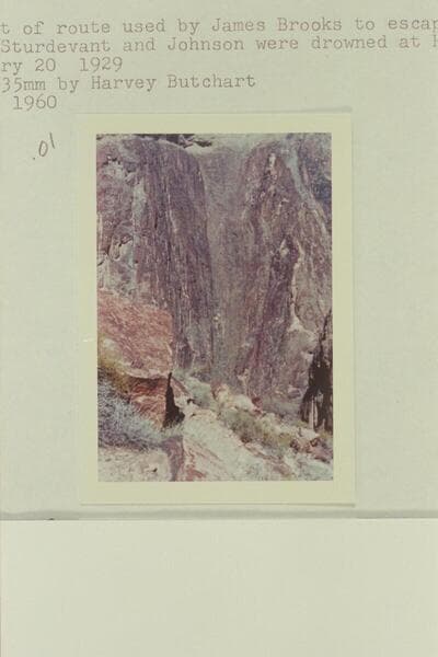 Upper part of route used by James Brooks to escape from the canyon after Sturdevant and Johnson were drowned at Horn Creek Rapid