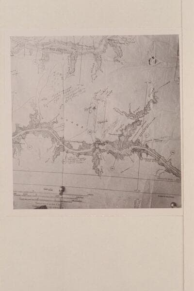 Buzz Holmstrom's sketch of Hance Rapid on the maps he used during his traverses of 1937 and 1938