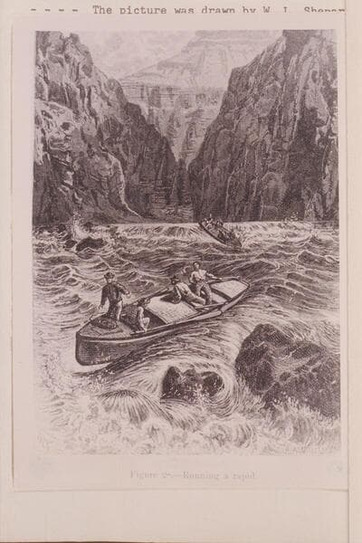 Running a rapid according to Powell's book: Powell, J. W., "Colorado River of the West", 1875