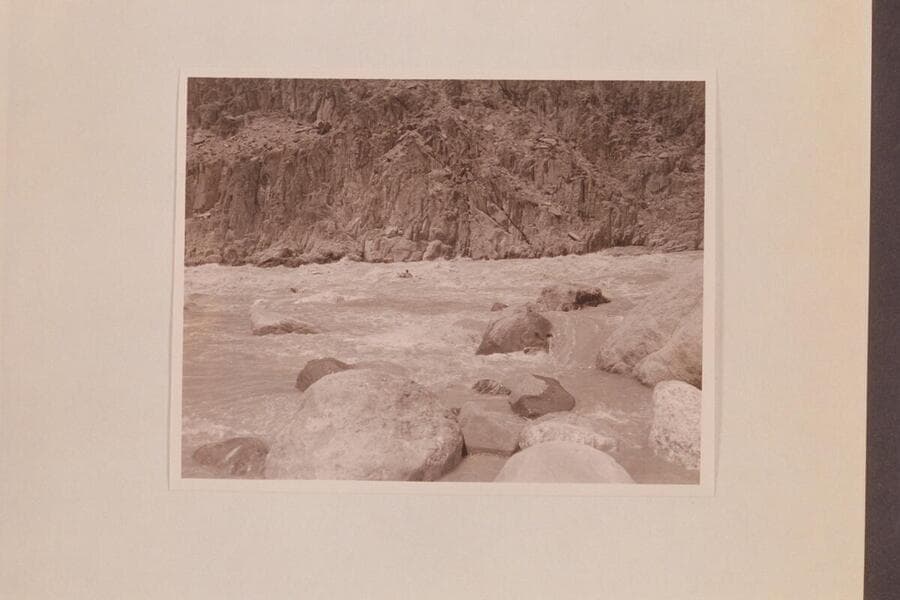 Marston piloting power boat through Granite Falls. The stage is approximately 53,000 cfs