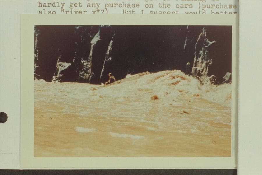 Frank Wright in the "Sandra" in Monument Creek Rapid