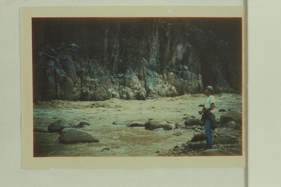 Granite Falls- Monument Rapid. Ellery Gibson stands at the shore