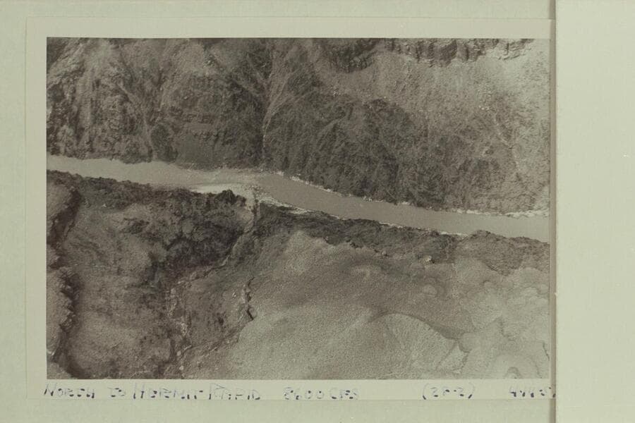 Looking southeast to rapid at Mile 137.65. Approximate gauge: 8,600 cfs