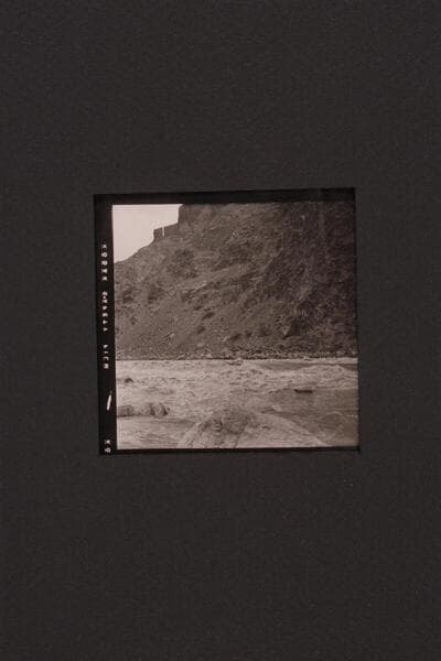 Boat dropping off far right tongue of Hance Rapid. At this stage there is a midstream course as well as one just to left of the run made by the boat in the photo