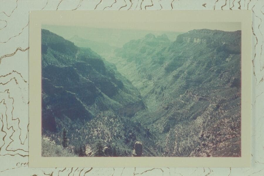 From Tonto Plateau at east side of Slate Creek northeast to Crystal Creek at left, Dragon Head at upper left, Temple of Ra, Osiris