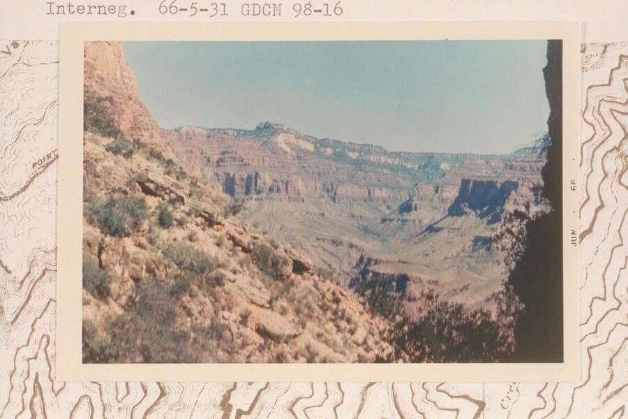 Redwall from near Shiva-Osiris saddle and on east side of tributary of Crystal Creek between Ra and Osiris. It offers no easy climbing route