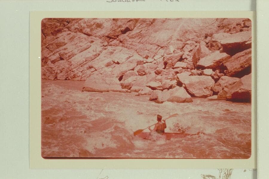 Ulrich Martins running his kayak through the rapid at Mile 231.9