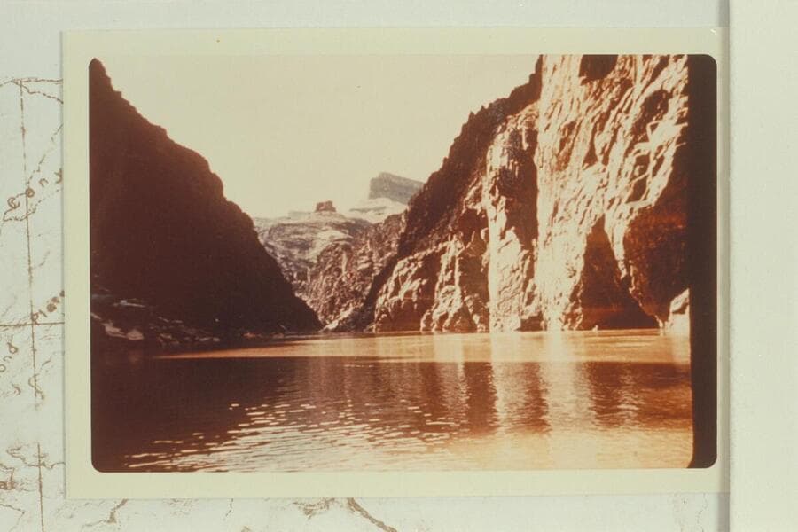 Upriver from near mouth of Turquoise Canyon. Mouths of Agate and Sapphire Canyons and Geike Peak