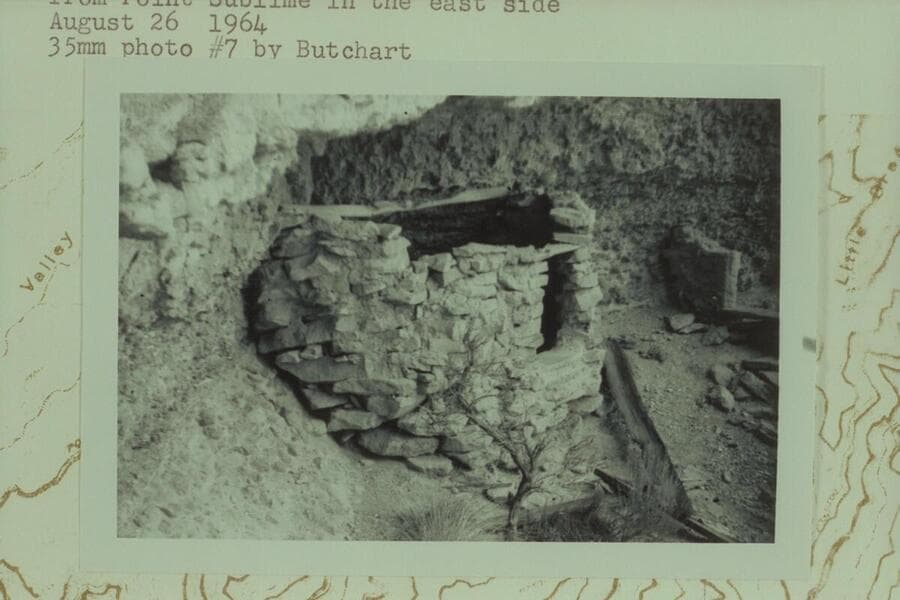 Dwelling on lower level. Ruins at base of Kaibab Formation north 1 1/2 miles from Point Sublime in the east side