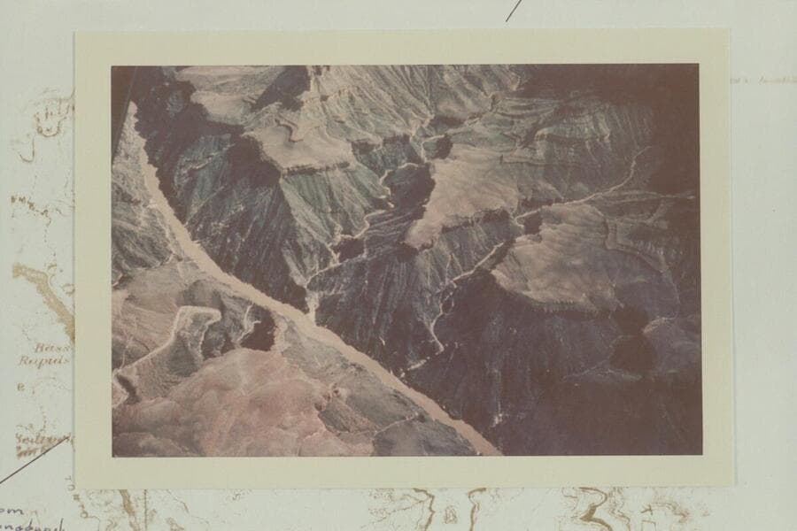 Ruby Canyon at upper left and Ruby Canyon Rapid at its mouth. Ruby Canyon Rapid heads at Mile 104.6 and drops about 8'