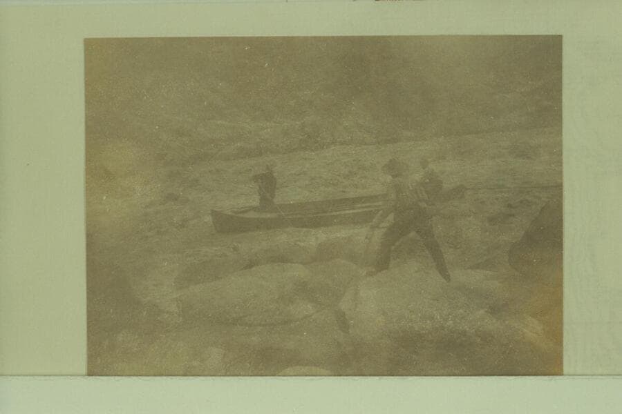 Portage by Stanton crew: "Lifting a Boat over the Head of a Rapid. Grand Canon."