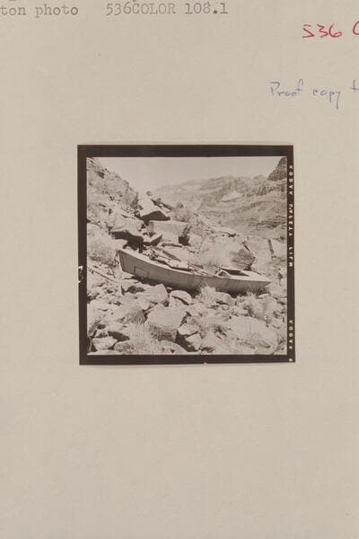 Russell-Tadje boat on left bank above Bass Cable. Mile 108, Grand Canyon