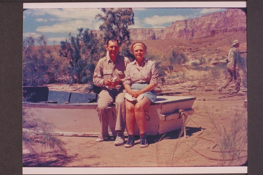 Malcolm and Fredonia Moss at Lees Ferry. End of San Juan run with Nevills