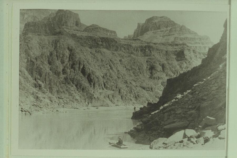 Looking through a part of the river gorge, foot of bad trail, Grand Canon. The view is upriver at approximately the present location of the Bass Cable