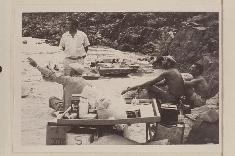 John Schulz explains the geology; Camp at lower end of Switching Yard, Mile 108