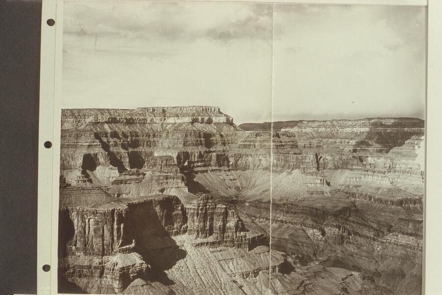 Across Shinumo Canyon from the saddle on the trail from Bass Ferry. Copy of glass plate; probably a photo by James