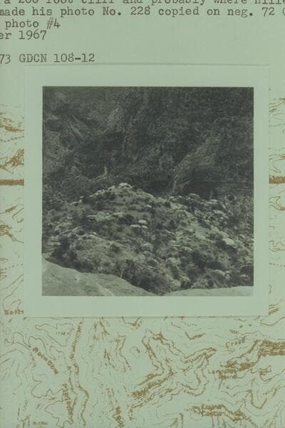 Down the Bass Trail from the North Rim in the Redwall section. From Esplanade and too high for duplicating the Hillers No. 228