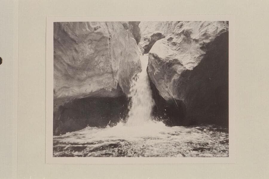 Bass Canyon and Bass Rapid at left. Mouth of Shinumo Creek and Shinumo Rapid at right. Mile 107.8 to 108.7
