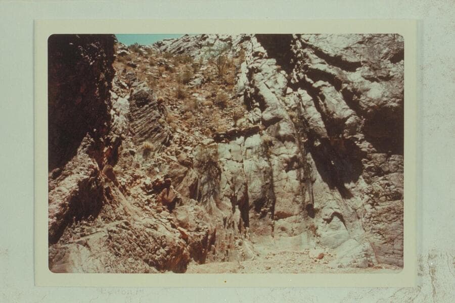 Horizontal shaft about 25 feet deep at Bass Asbestos Mine in Hakatai Canyon. Note hand tools at left
