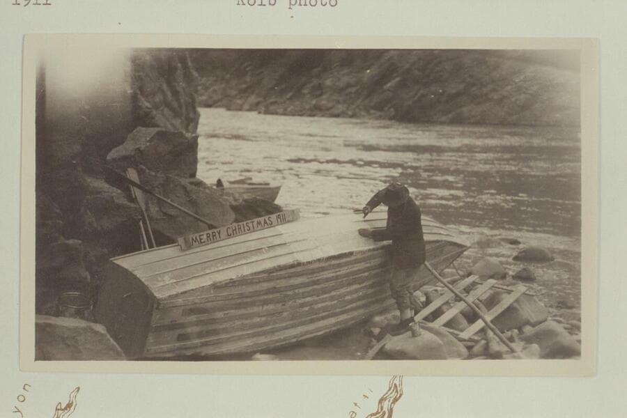 The Kolb brothers capsized in Waltenberg Rapid at Mile 112 on Christmas day. They camped below for repairs and called the rapid "Christmas Rapid"