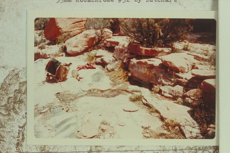 A convenient overhang used as a camp by Bass near Mystic Spring