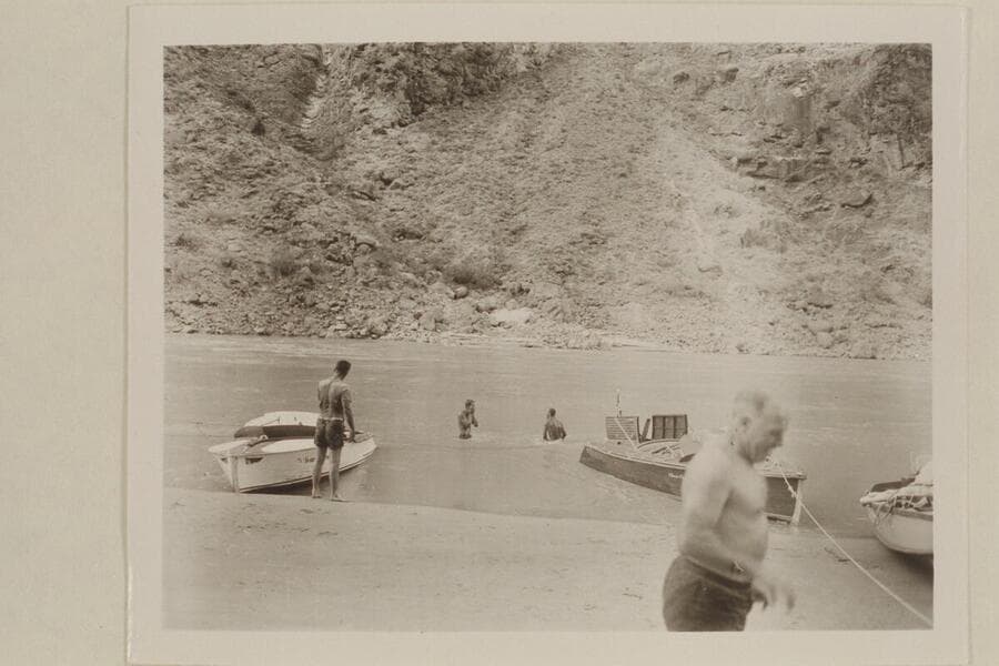 The Powell boats moored at right bank below Chandler Falls, Mile 47