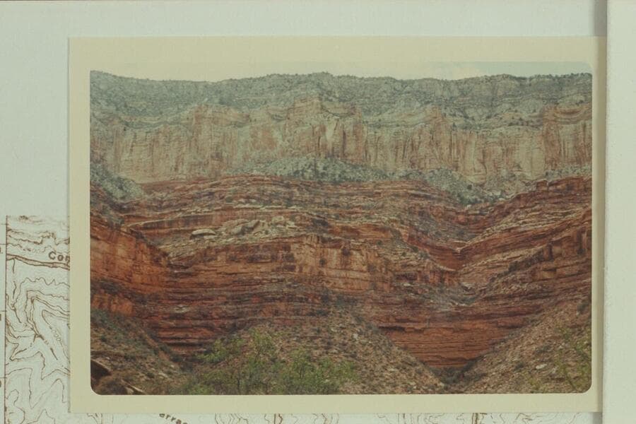 Down through the Supai near Apache Point to reach Royal Arch Creek. Mount Huwethawali in distance