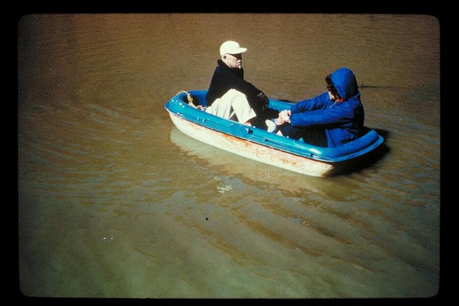 Dock Marston and Helen Stiles being lightered from Tex's jet boat to an island after the jet had grounded. The Portal