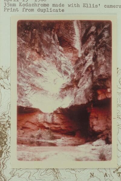 Up river from below Waltenberg Rapid. The sun-lighted wall at upper left is above the mouth of Waltenberg Canyon