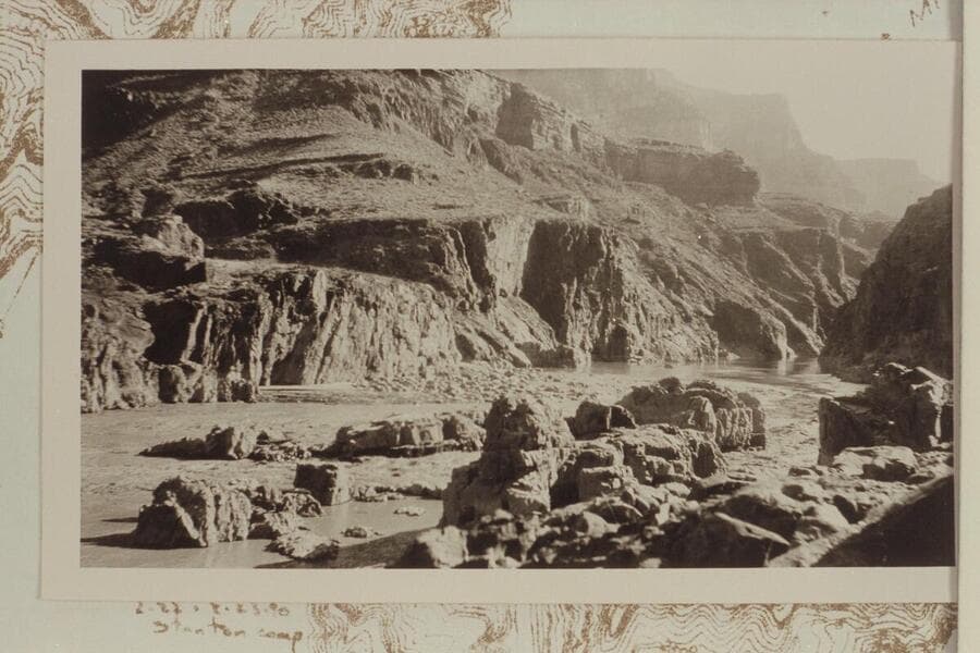 Bedrock Rapid. Looking across the river toward head of the big rock in the middle of the river