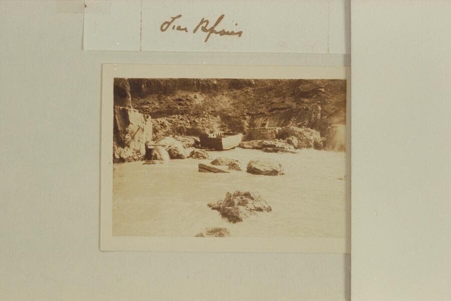 Bessie and Glen R. Hyde on their sweep-scow at Lees Ferry