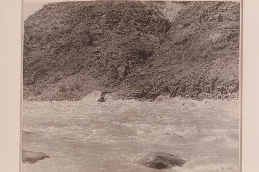 Cruising at the head of Lake Mead at end of 1951 power run. Frances Belknap and Edi Jaun in the "Step-in-Again."