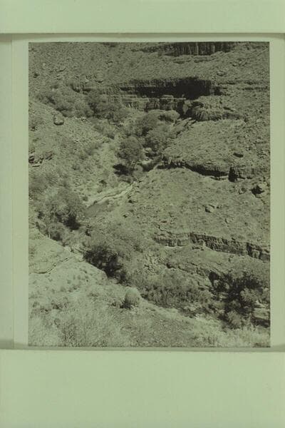 Blake and cactus. Tapeats Creek in background, just above box canyon of Tapeats Creek and not far from the river