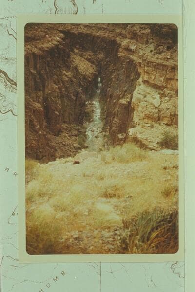 Blake and cactus. Tapeats Creek in background, just above box canyon of Tapeats Creek and not far from the river
