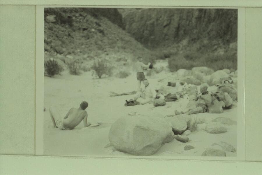 Camp at mouth of Tapeats Creek; Edward Hudson, Robinson, Taylor and Marston