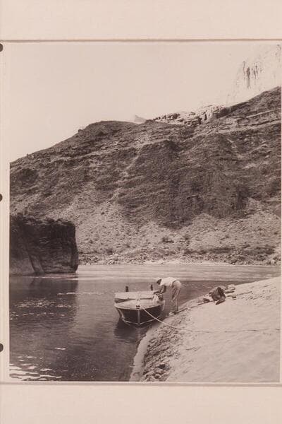 The motor boat moored in the lagoon at Tapeats Creek; Guy Forcier and Marston