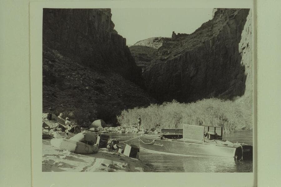 The motorboat "Hudson" in the lagoon at the mouth of Tapeats Creek