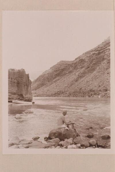 Joe Desloge at the laundry- mouth of Tapeats. Cooper is aboard the "Sweet Chariot" in the background