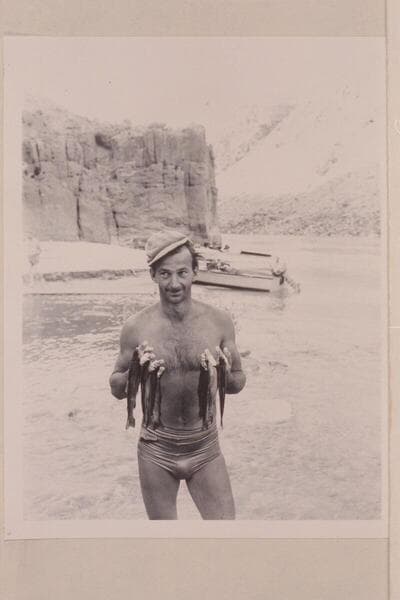 Belknap cooks the Rainbow Trout caught by Sanderson from Tapeats Creek