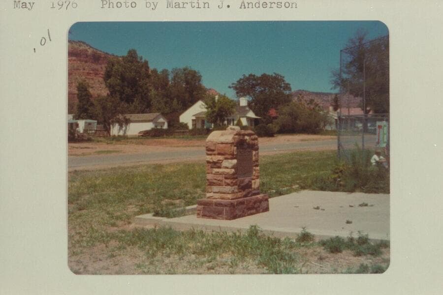 ![Monument in Kanab marking the north end of the Powell baseline [photo reverse: Note--stone atop monument was originally in middle of street]](/_next/image?url=https%3A%2F%2Frail.huntington.org%2FIIIF3%2FImage%2F22APN4IV5V5V%2Ffull%2F%5E360%2C%2F0%2Fdefault.jpg&w=750&q=75)